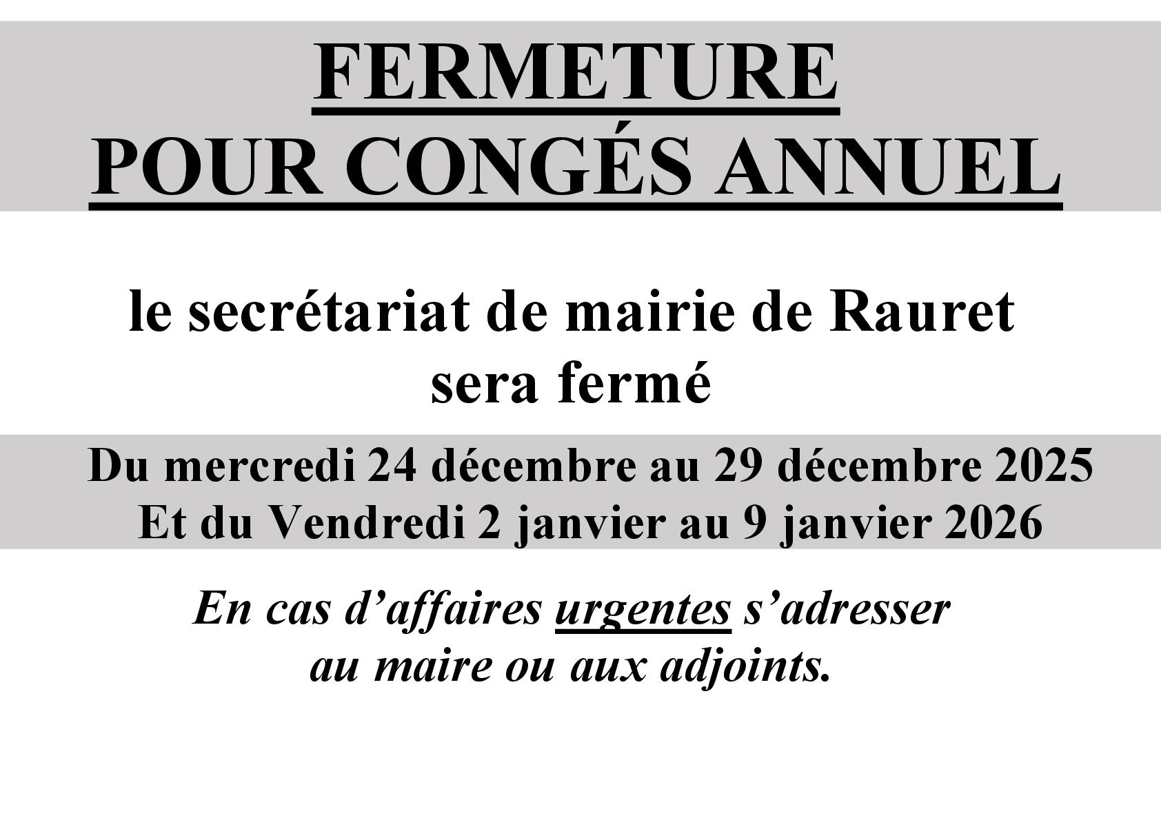 FERMETURE DE LA MAIRIE FÊTES DE FIN D ‘ANNÉE